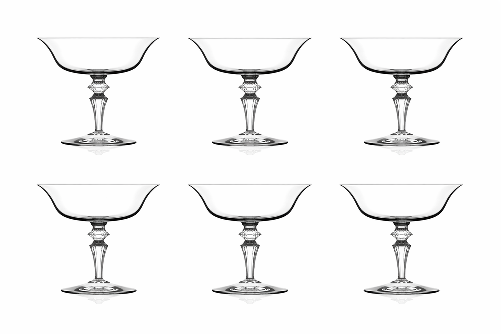 An eclectic glass apt for serving classic cocktails such as El Presidente in larger measures. Its characteristic form draws on the Champagne coupe, rendering it ideal for sparkling wine. The Double Presidente, is perfect for Sours.